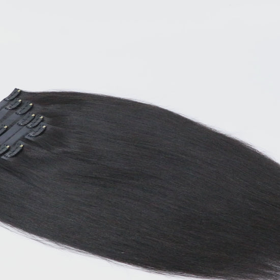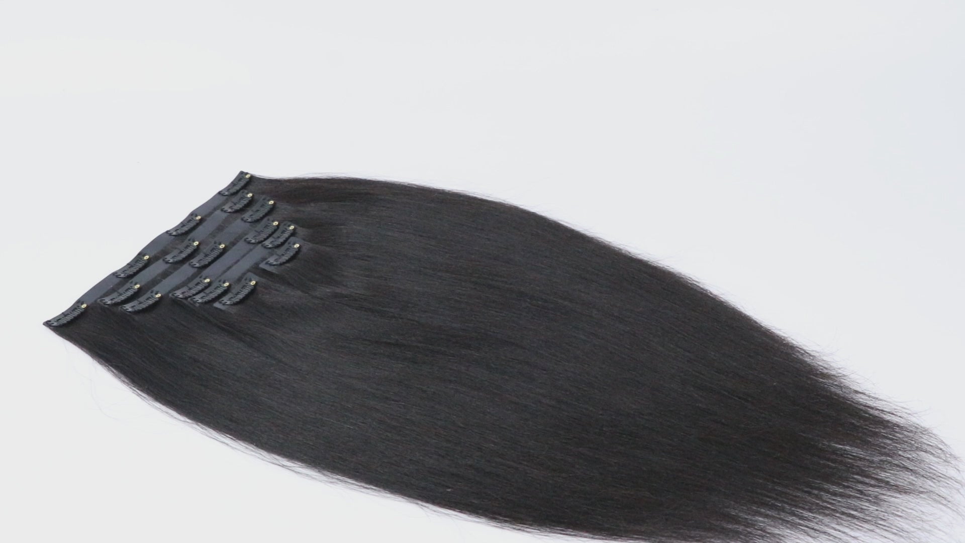 Curlscrown Seamless PU Clip in Hair Relaxed Light Yaki Extension Hair.